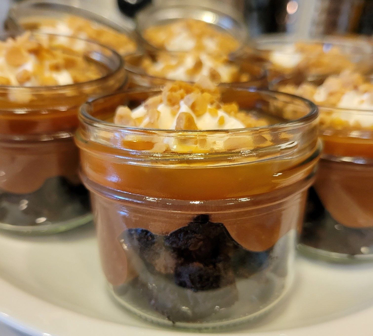 We are Nice Jarz!  Our dessert jar business offers a variety of delicious and delectable treats that are perfect for any occasion.  Each jar is filled with carefully crafted layers of sweet ingredients, creating a delightful and colorful treat that is sure to satisfy your sweet tooth.  We offer a range of flavors and options!  Our dessert jars are perfect for parties, events, or simply as a special treat for yourself or a loved one.  When ordering, we have a minimum of 5 jars per flavor at $6.00 per 4 oz. glass mason jar.    To order, please use the "Contact Us" button to inquire if dates for your event are available on our calendar.